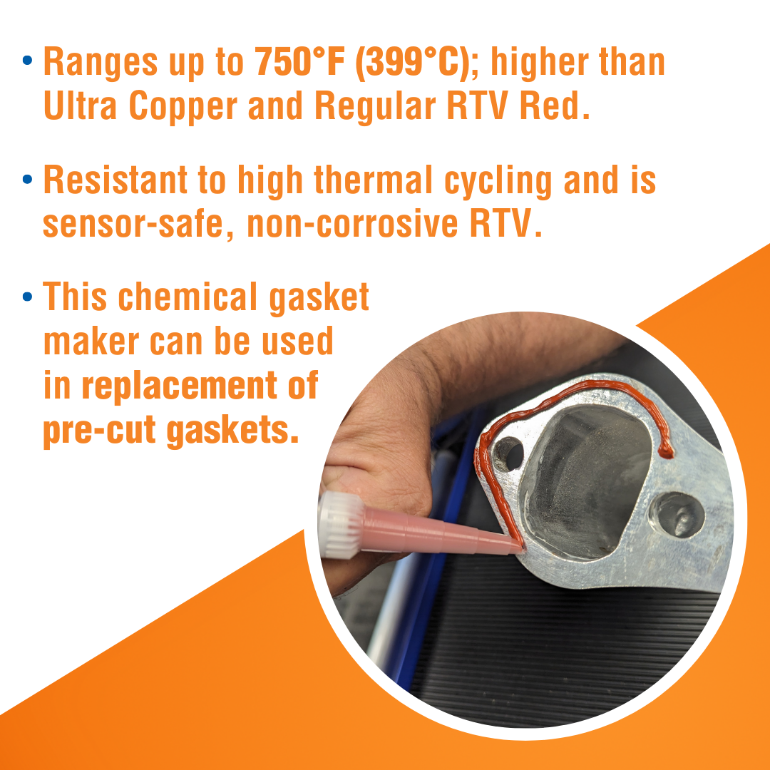 Permatex’s Optimum Easy-Disassembly Red offers the maximum temperature resistant available today, up to (399°C) 750°F. It is sensor safe, low odor, and non-corrosive. This product is resistant to high thermal cycling, making it ideal for high-temperature applications such as the exhaust manifold, header, turbochargers and slip-fit exhaust parts.